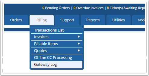 Navigate to Billing > Gateway Log
